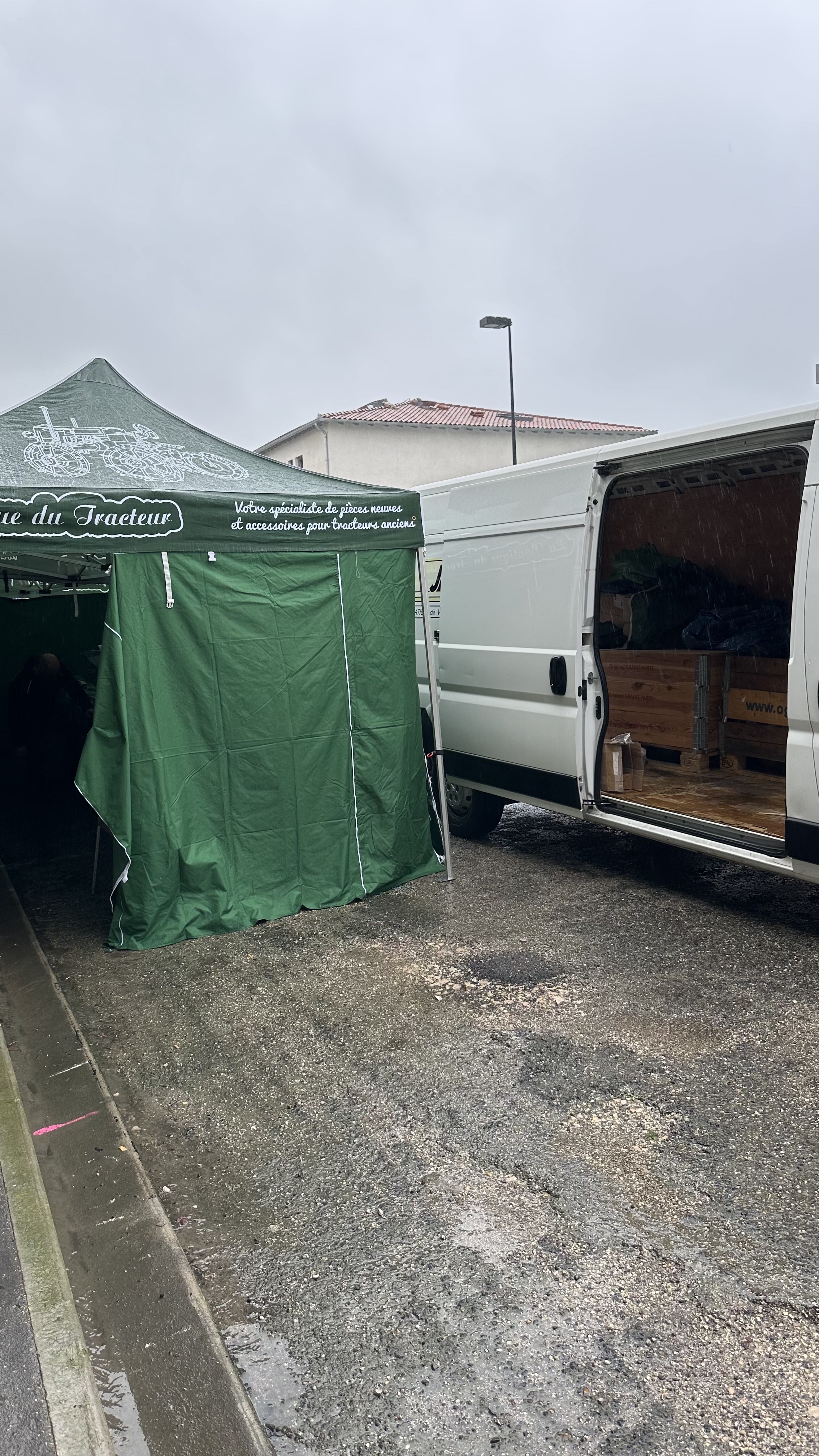 - L’installation de notre stand, même sous la pluie, pour tout préparer à temps.